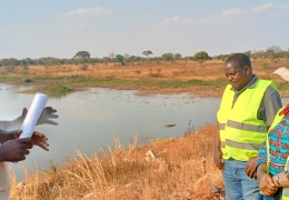 Pichani:Mkuu wa Mkoa wa Katavi Mhe.Mwanamvua Mrindoko akipokea maelezo kuhusu utekelezaji wa Mradi wa Bwala la Maji Nsenkwa kutoka kwa Meneja wa RUWASA Wilaya ya Mlele Bw.Gilbert Isack wakati alipofan...