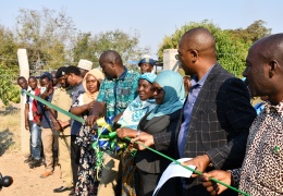 Pichani:Mkuu wa Mkoa wa Katavi Mhe.Mwanamvua Mrindoko akikata utepe ishara ya kuzindua zoezi la ugawaji wa pikipiki zilizotolewa na RUWASA makao makuu kwa ajili ya jumuia za watumia maji 12 Agosti 202...