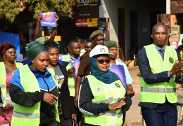 Pichani:Mkuu wa Mkoa wa Katavi Mhe.Mwanamvua Mrindoko(katikati) ,Katibu tawala Mkoa wa Katavi Bw.Abas Rugwa(kushoto) pamoja na Mkuu wa Wilaya ya Mpanda(kulia)waliposhiriki matembezi katika bonan...