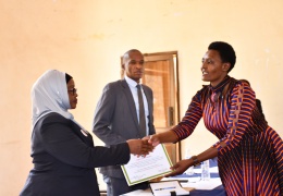 Pichani:Mkuu wa Mkoa wa Katavi Mhe.Mwanamvua Mrindoko akimtunuku cheti cha Mshindi wa kwanza Mkurugenzi Mtendaji wa Halmashauri ya Wilaya ya Mlele Bi.Theresia Irafay kwa kuibuka kidedea katika ukusany...