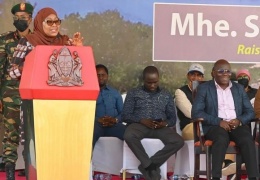 Pichani:Rais wa Jamhuri ya Muungano wa Tanzania Mhe.Samia Suluhu Hassan akizungumza na Wananchi katika Kilele cha Maadhimisho ya Sikukuu ya Wakulima Nanenane katika Viwanjwa vya John Mwakangare ...