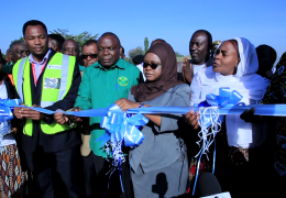 Pichani:Mkuu wa Mkoa wa Katavi Mh.Mwanamvua Mrindoko akikata utepe kuzindua Safari za Kila Jumatatu za Shirika la Ndege Nchini ATCL katika Uwanja wa Ndege Mpanda Mkoani Katavi