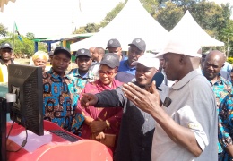 Mgeni rasmi katika Maadhimisho ya Sikukuu ya Wafanyakazi Mei Mosi 2022, Mkuu wa Wilaya ya Mlele Mh.Filberto Sanga(Aliyevalia Suti Katikati) kwa niaba ya Mkuu wa Mkoa wa Katavi akipokea maelezo ku...
