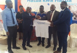 Mkuu wa Mkoa wa Katavi akipokea T.Shirt kutoka kwa Ally Ngingiti, Meneja Mwandamizi NMB Makao Makuu Dar Es Salaam tarehe 24/9/2020. NMB imeandaa T.Shirt hizo kwa ajili ya Tamasha la Utalii wa Kitamadu...