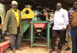 Mkuu wa Mkoa wa Katavi Mhe Amosi Gabriel Makala akikagua moja ya mashine ya kisasa ya kukobolea kahawa katika moja ya ziara yake aliyofanya Mkoani Kigoma akifuatana na viongozi mbalimbali wa Mko...