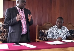 Mkuu wa Mkoa wa Katavi Mhe Amos Gabriel Makalla akihamasisha ujenzi wa hospitali za Wilaya ili uende kwa kasi ya kuridhisha kwa kuwa tayari wameshapewa fedha za ujenzi. Pembeni mwake ni Katibu T...