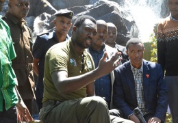 Waziri wa Maliasili na Utalii Dk. Hamisi Kigwangalla akifurahia uhifadhi wa maporomoka ya Nkondwe yaliyopo Wilaya ya Tanganyika, Mkoa wa Katavi....